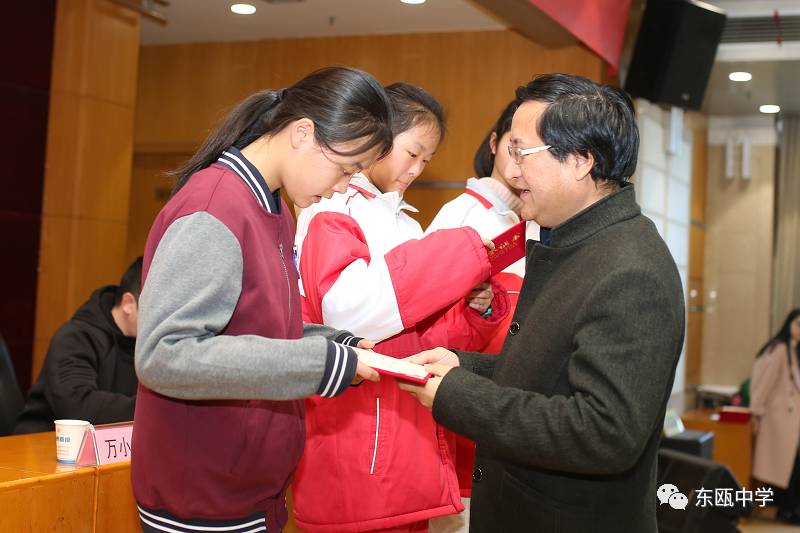 万小锋处长亲自给李紫琪颁奖,并对她说:“你是最棒的。东瓯中学一定会成就你的理想。”